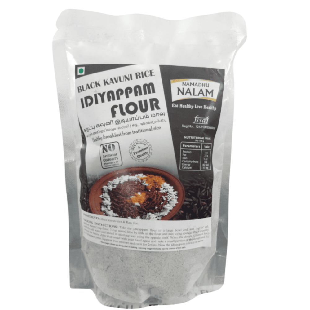 Black Rice Idiappam Flour is a nutrient-dense flour made from finely ground black rice, offering a unique twist on traditional idiappam. Known for its deep color and rich antioxidant content, this flour creates soft, delicate string hoppers that are not only visually striking but also packed with health benefits. High in fiber, iron, and essential minerals, Black Rice Idiappam Flour promotes better digestion and overall wellness. It pairs beautifully with coconut milk, curry, or chutneys, providing a wholesome and flavorful meal option.