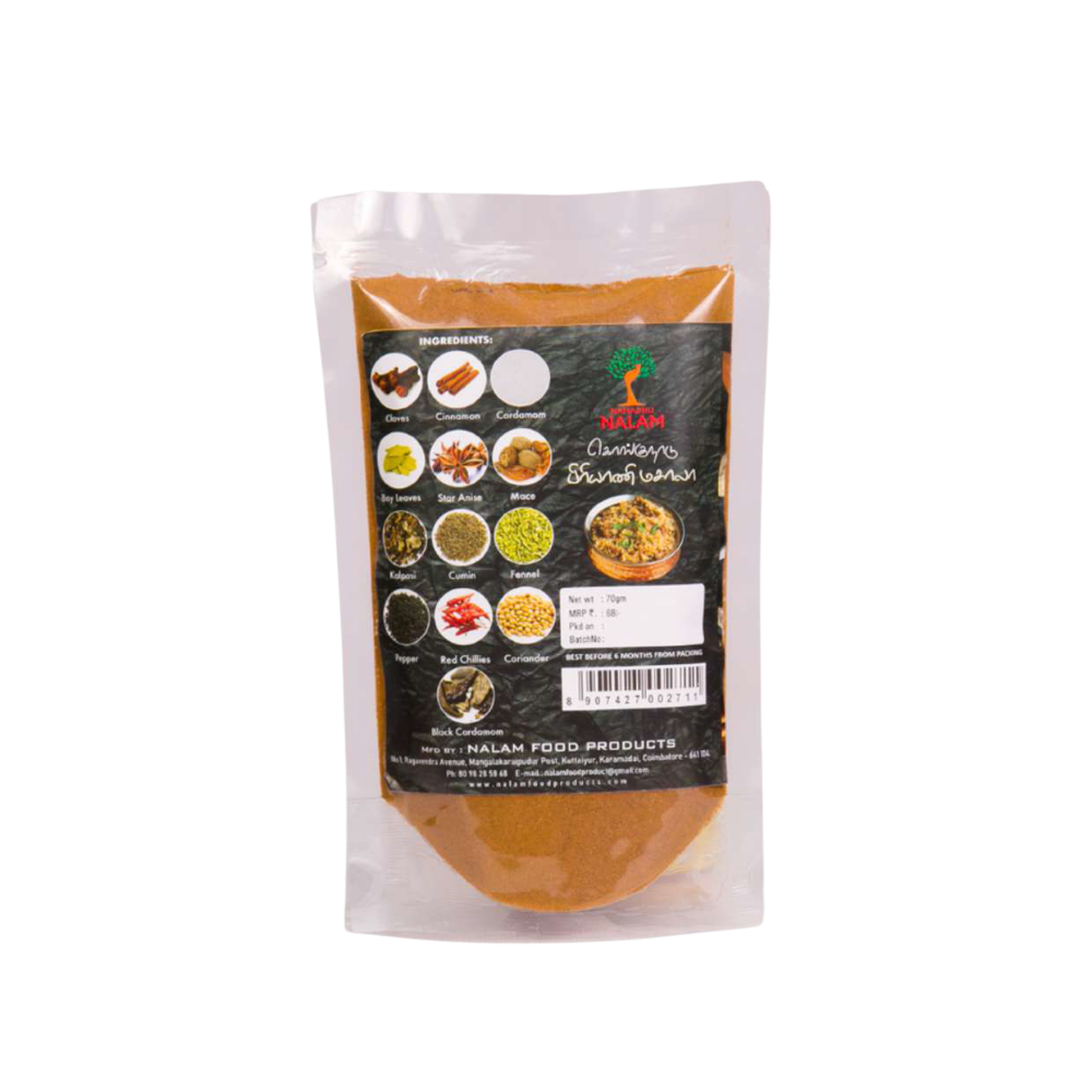 Biryani Masala is a fragrant and aromatic spice blend used to make flavorful biryani rice. It combines a mix of spices like cumin, coriander, cinnamon, cardamom, cloves, and star anise, along with a touch of heat from red chilies. This masala infuses the rice and meat with rich, complex flavors, making biryani a savory, mouthwatering dish. Biryani Masala is an essential ingredient in preparing this iconic dish, known for its bold taste and enticing aroma.