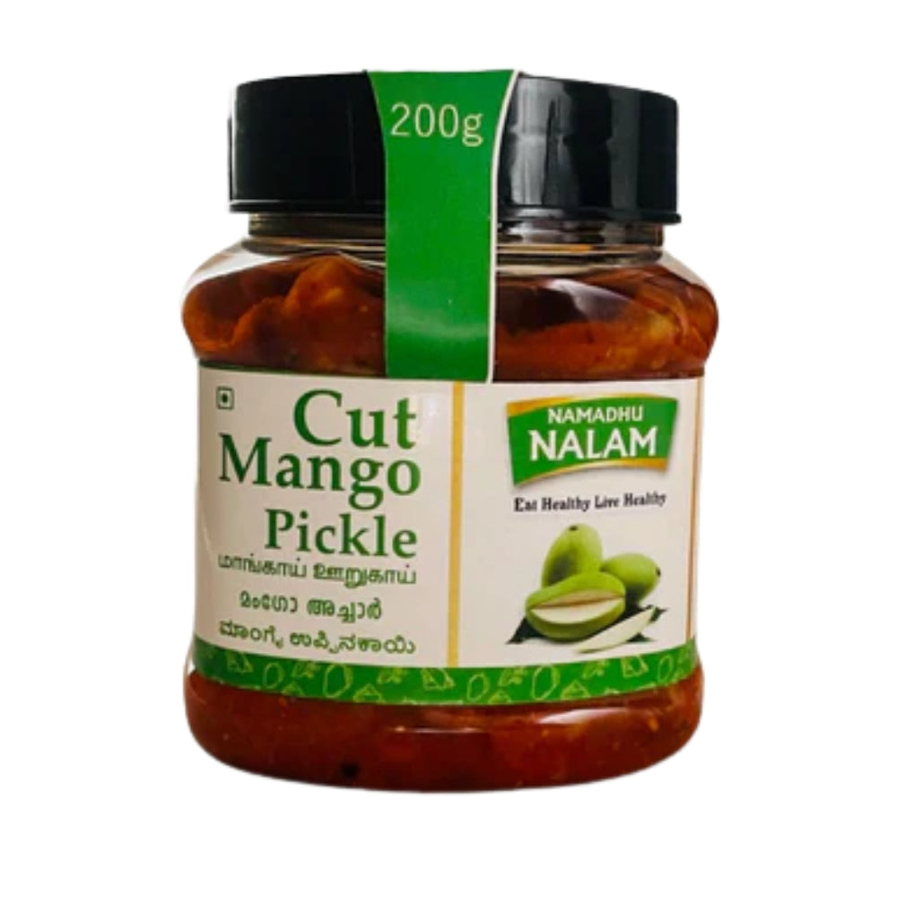 Cut Mango Pickle is a deliciously tangy and spicy pickle made from fresh, raw mangoes, chopped into bite-sized pieces and soaked in a flavorful blend of mustard, red chili, and other traditional spices. This pickle captures the perfect balance of sourness and heat, adding a vibrant burst of flavor to any meal. Rich in antioxidants and vitamin C, Cut Mango Pickle is not only a treat for the taste buds but also supports digestion and boosts immunity. It pairs wonderfully with rice, parathas, and snacks, making it a must-have in any kitchen.