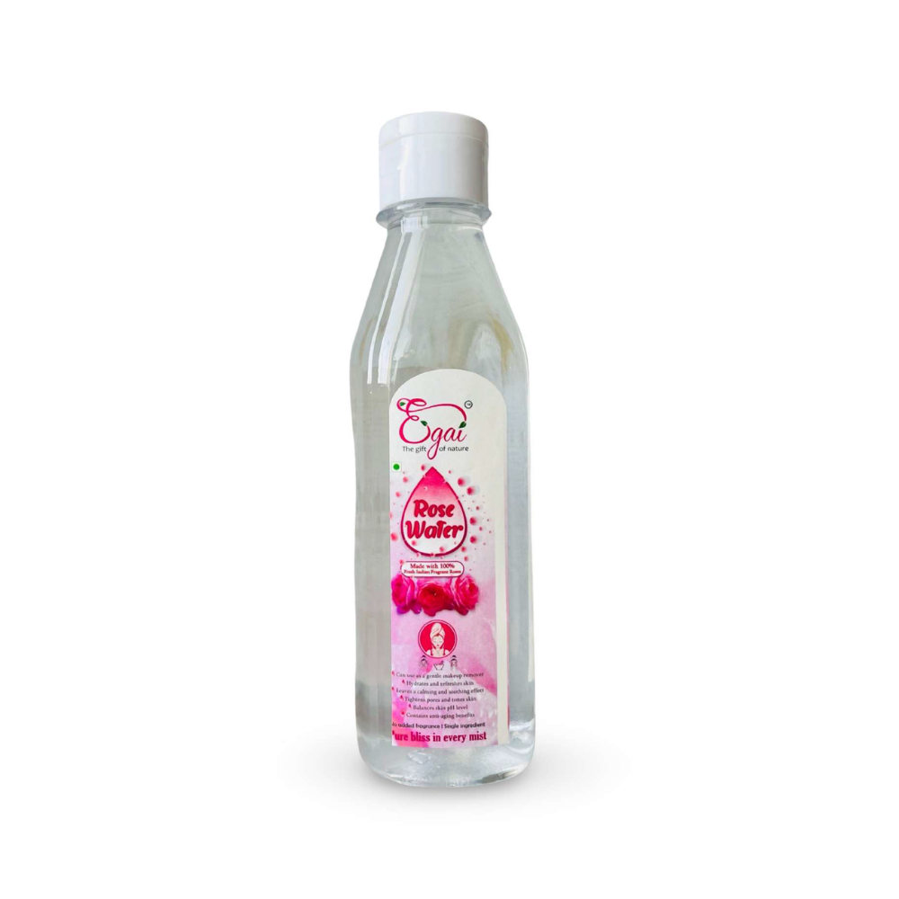 Egai Rose Water is a refreshing, natural extract made from the distillation of fresh rose petals. Known for its soothing and aromatic qualities, it is widely used in skincare for its ability to hydrate, tone, and balance the skin. Egai Rose Water helps to calm irritated skin, reduce redness, and provide a natural glow. It also acts as a gentle cleanser, removing impurities and tightening pores without drying the skin. Often used as a toner, facial mist, or added to homemade face packs, Egai Rose Water is a versatile and refreshing addition to any skincare routine.