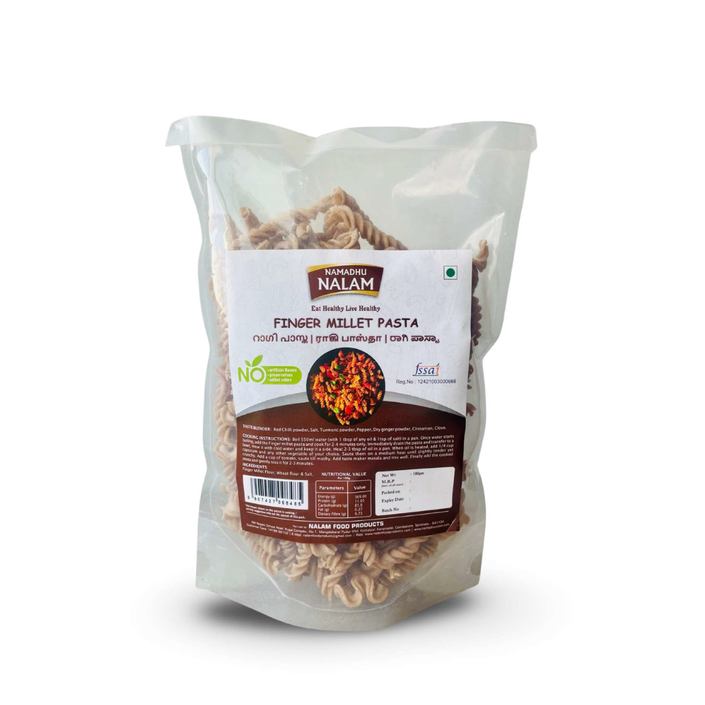 Finger Millet Pasta is a nutritious, gluten-free alternative made from Finger Millet (Ragi), a highly versatile grain known for its rich content of calcium, iron, and fiber. This pasta is easy to digest, helps maintain strong bones, and supports digestive health. With its low glycemic index, Finger Millet Pasta is ideal for managing blood sugar levels. It can be used in a variety of dishes, such as pasta salads, stir-fries, or traditional pasta recipes, providing a healthy, wholesome twist to your meals while offering sustained energy and well-being.