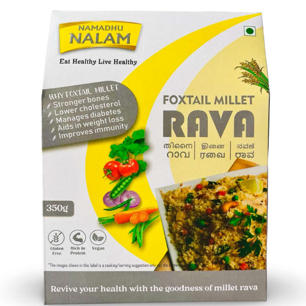 Foxtail Millet Rava is a healthy, gluten-free semolina made from Foxtail Millet, a grain known for its high fiber, protein, and essential nutrients like iron and calcium. This rava is easy to digest and offers a nutritious alternative to traditional wheat rava, making it ideal for those on gluten-free or low-glycemic diets. Foxtail Millet Rava is perfect for preparing dishes like upma, pongal, porridge, and even sweets. It provides sustained energy, helps regulate blood sugar levels, and supports digestive health, making it a wholesome addition to any meal.