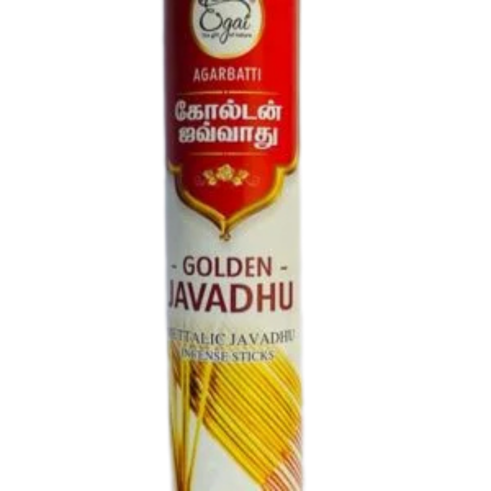 Golden Javvadhu Agarbathi Jar contains incense sticks made from Javvadhu (also known as Jatamansi), a revered herb known for its calming and aromatic properties. The golden variant enhances the traditional fragrance with a warm, rich scent that promotes mental clarity, relaxation, and a peaceful atmosphere. Golden Javvadhu Agarbathi is ideal for use during meditation, prayers, or any spiritual practice, helping to cleanse the air and clear negative energy. The unique blend creates a serene and tranquil environment, making it perfect for use in temples, homes, or yoga spaces.