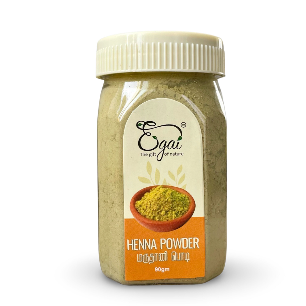 Henna Powder, also known as Maruthani, is a natural, finely ground powder made from the leaves of the henna plant (Lawsonia inermis). Traditionally used for body art and hair coloring, it imparts a beautiful reddish-brown stain. Henna powder is known for its cooling and conditioning properties, promoting healthy scalp and hair by strengthening roots, reducing dandruff, and adding shine. It is a popular, chemical-free alternative to synthetic hair dyes, offering a safe and natural way to enhance hair color while nourishing and revitalizing the hair.