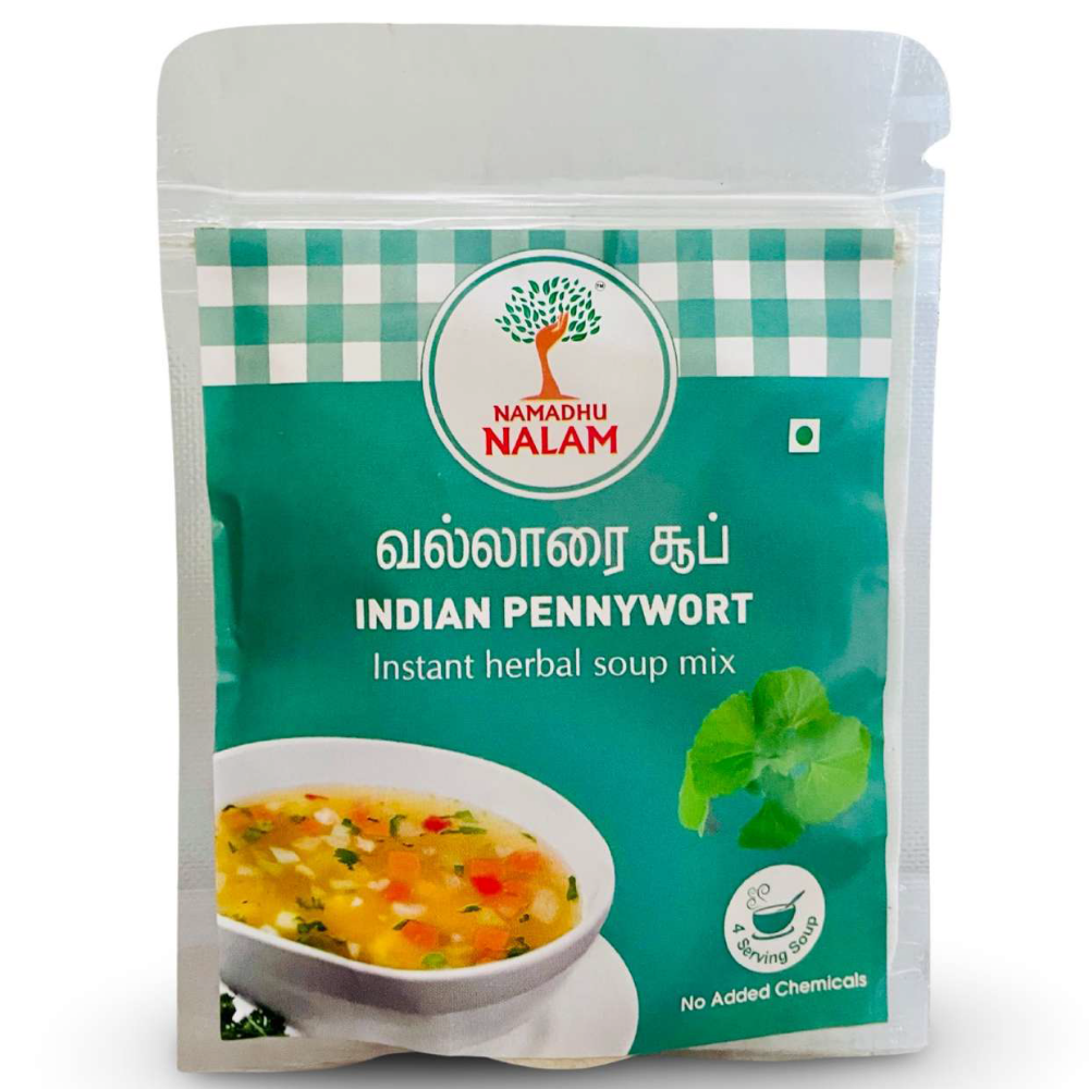Indian Pennywort Soup Mix is a rejuvenating and nourishing soup blend made from Indian Pennywort (Centella Asiatica), a powerful herb known for its cognitive, skin-healing, and anti-inflammatory properties. This soup mix combines the goodness of Indian Pennywort with a blend of traditional spices, offering a delicious and health-boosting meal. Known for improving memory, promoting healthy circulation, and aiding digestion, this soup is perfect for overall wellness. Rich in antioxidants, it helps detoxify the body, promote glowing skin, and enhance mental clarity, making it a perfect addition to any healthy diet.
