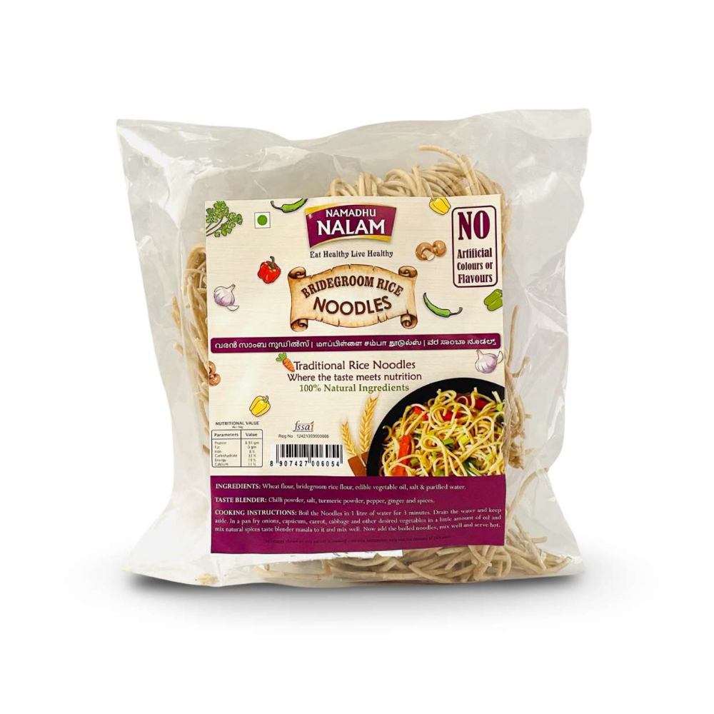 Mappillai Samba Rice Noodles are a traditional, gluten-free noodle made from Mappillai Samba Rice, a variety of rice known for its rich flavor and health benefits. Packed with fiber, vitamins, and antioxidants, these noodles are excellent for improving digestion, boosting
