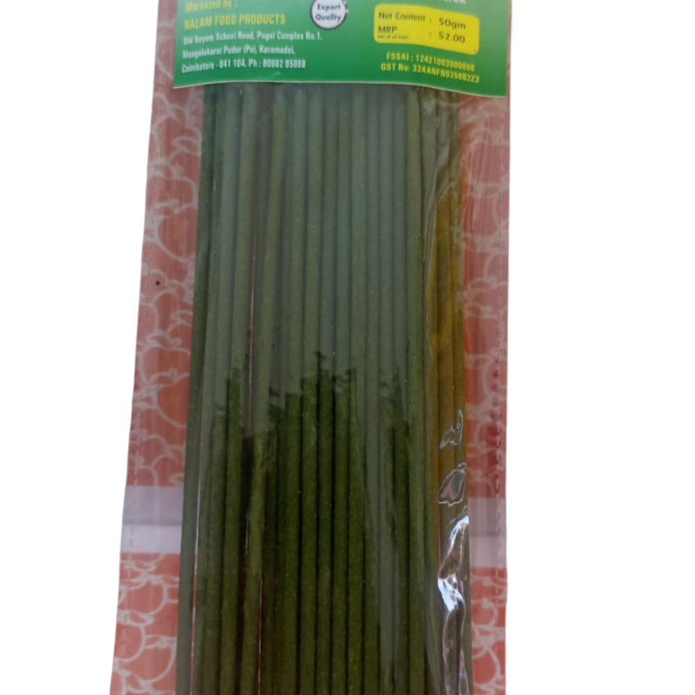Marikolundhu Agarbathi Pouch contains incense sticks made from Marikolundhu (Indian Laburnum), a natural herb known for its soothing and aromatic properties. The fragrance of Marikolundhu is calming and purifying, making it perfect for spiritual practices, meditation, and creating a peaceful environment. These agarbathis help cleanse the air, reduce stress, and promote mental clarity and relaxation. Marikolundhu Agarbathi Pouch is ideal for use in temples, homes, or yoga spaces, offering a natural, earthy aroma that enhances the ambiance and brings tranquility to your surroundings.