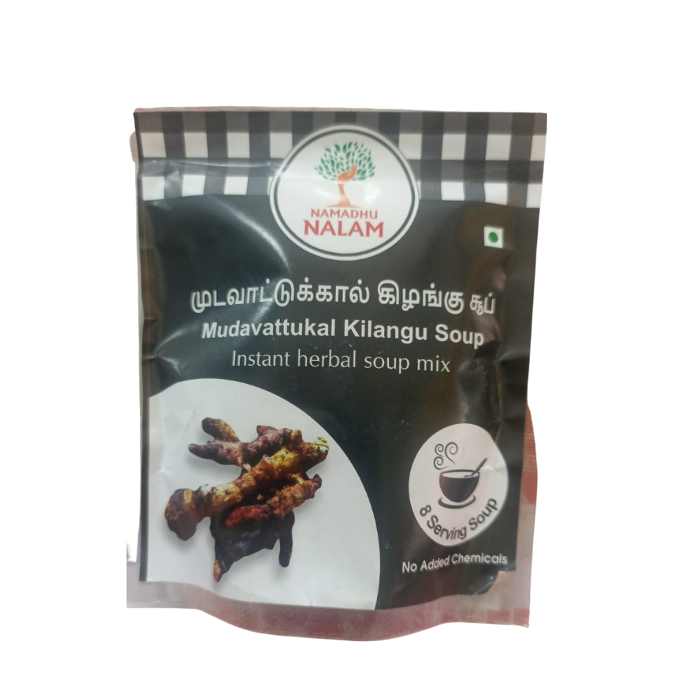 Mudavatukal Kilangu Soup Mix is a traditional and nutritious soup blend made from Mudavatukal Kilangu (Dioscorea bulbifera), a type of yam known for its rich nutritional profile and health benefits. This soup mix combines the goodness of Mudavatukal Kilangu with a mix of aromatic spices, creating a comforting and healthy broth. Known for its digestive, anti-inflammatory, and energy-boosting properties, Mudavatukal Kilangu supports overall well-being, aids in weight management, and promotes healthy skin. Rich in vitamins, minerals, and antioxidants, this soup is perfect for improving digestion and boosting immunity, while providing a warm, nourishing meal.