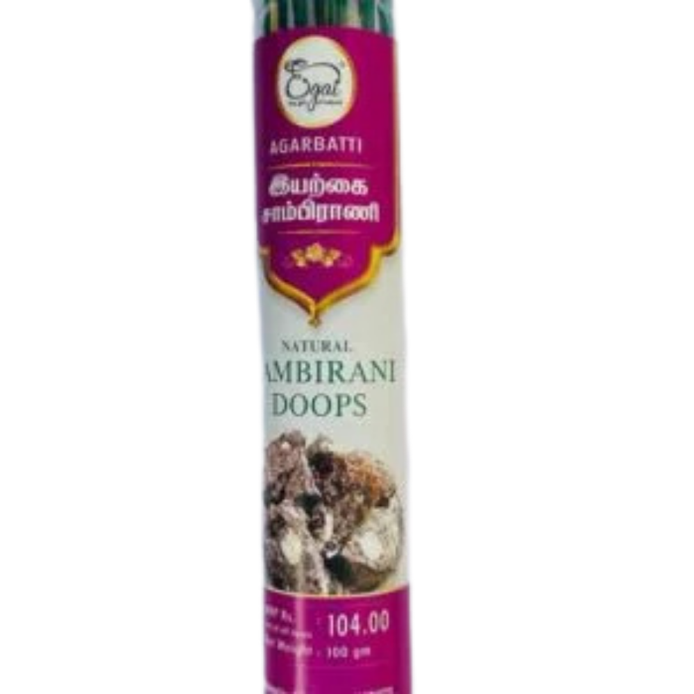 Natural Sambirani Agarbathi Jar contains incense sticks made from Sambirani (also known as Frankincense), a natural resin prized for its rich, earthy fragrance and purifying properties. These agarbathis help cleanse the air, eliminate negative energies, and create a calm, spiritual environment. The soothing scent of Sambirani is widely used in meditation, prayers, and rituals to enhance focus and promote tranquility. The Natural Sambirani Agarbathi Jar is ideal for daily use at home, in temples, or during spiritual practices, providing a natural, refreshing aroma that helps uplift the mood and create a serene atmosphere.