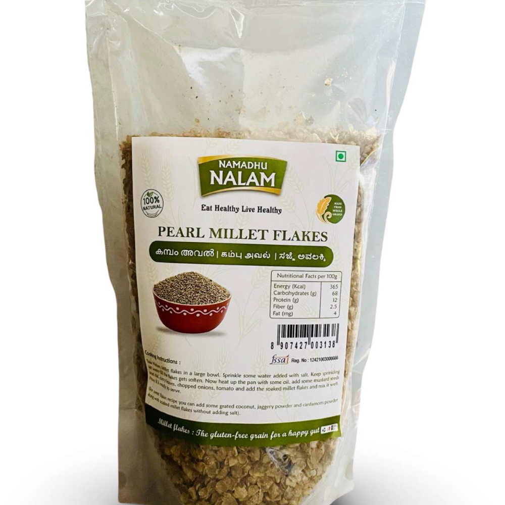 Pearl Millet Flakes are a nutritious, gluten-free alternative made from Pearl Millet (Bajra), a grain rich in fiber, protein, and essential minerals like iron and magnesium. These flakes are lightweight, easy to digest, and perfect for quick and healthy meals. With a low glycemic index, Pearl Millet Flakes help manage blood sugar levels and promote digestive health. They can be used in a variety of dishes such as porridge, smoothies, or as a topping for salads and soups, offering a wholesome and delicious addition to your diet.