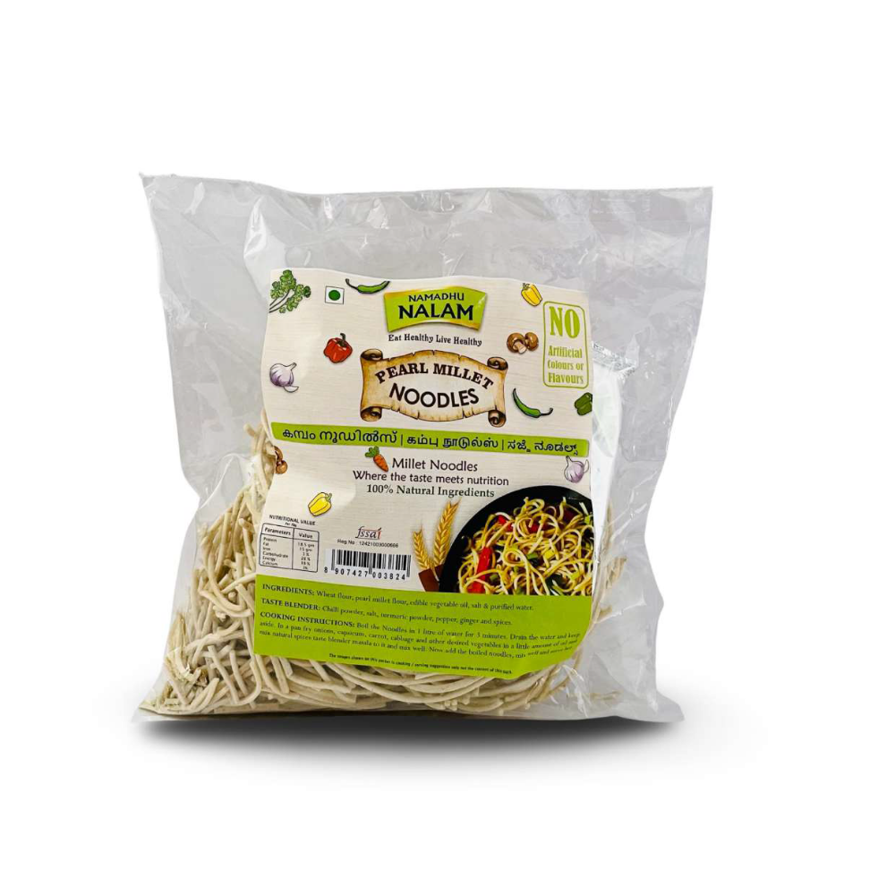 Pearl Millet Noodles are a nutritious, gluten-free alternative made from Pearl Millet (Bajra), a grain rich in fiber, protein, and essential minerals like iron and magnesium. These noodles offer a wholesome, energy-boosting option for those looking to enjoy a healthy meal while managing blood sugar levels, thanks to their low glycemic index. Pearl Millet Noodles are easy to digest and can be used in a variety of dishes, such as stir-fries, soups, or salads. They provide a delicious and wholesome twist to your regular noodle dishes, supporting overall health and well-being.